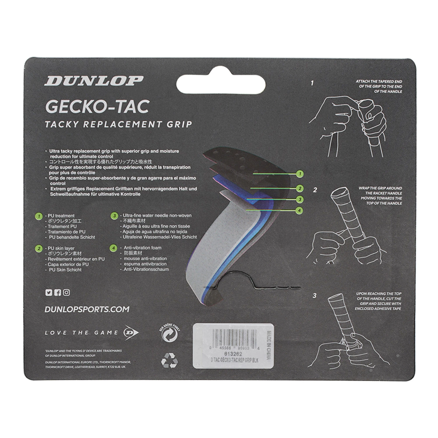 Dunlop Gecko-Tac Replacement Grip Confezione Da 1 – Nero